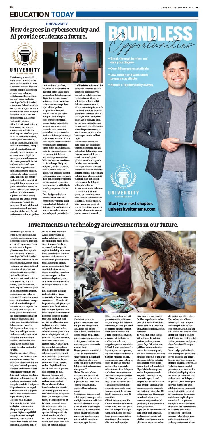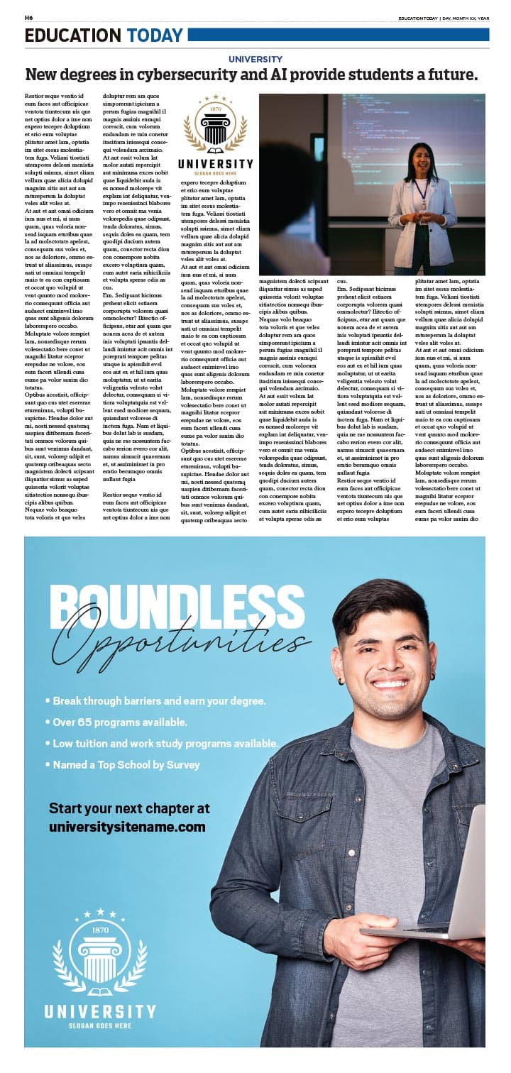 PLATINUM & GOLD Sponsorships include a traditional ad as well as space to tell a story of your choosing – highlight in-demand fields, new programs, etc.
