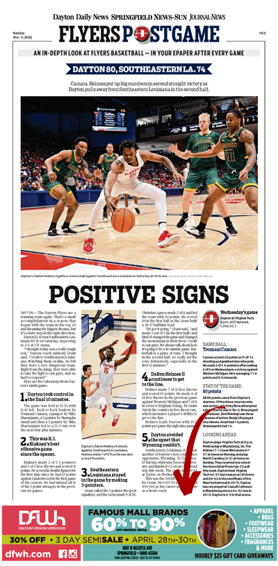 Flyer Connection will be inserted directly into the Sunday Dayton Daily News for 10 weeks throughout the Flyer Basketball season
